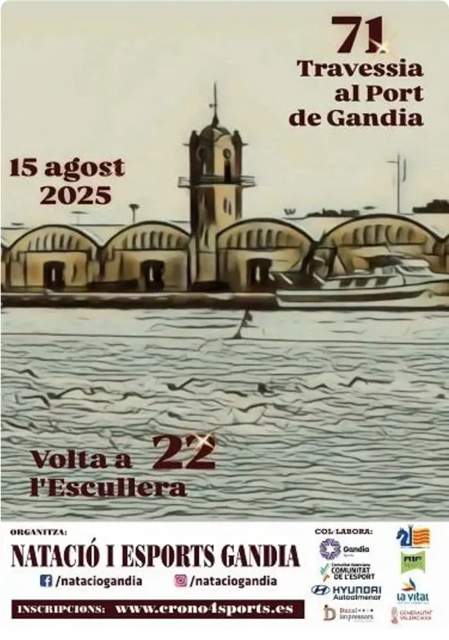 La playa de Gandia será el escenario, el próximo martes 15 de agosto, de dos de las competiciones más emblemáticas del calendario estival: la LXXI Travessia al Port (XXXIV Memorial Damià Català) y la XXII Volta a l’Escullera Nord (XII Memorial José Mª Ángel ‘Pitet’). Ambas pruebas están organizadas por el Club de Natació i Esports Gandia (NiE), con la colaboración del Ayuntamiento de Gandia y la Federación de Natación de la Comunitat Valenciana.