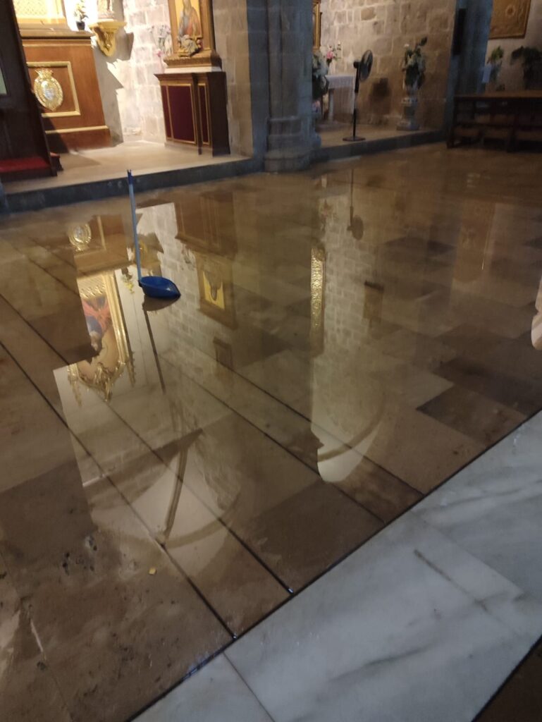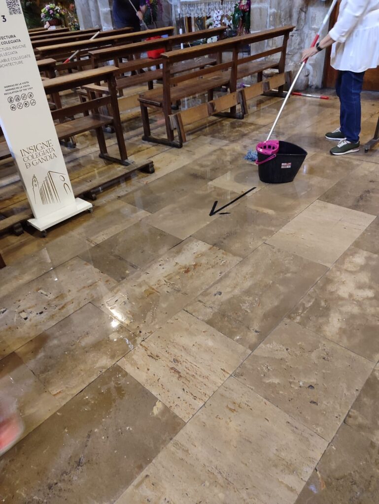 Las consecuencias son visibles: morteros disgregados, vegetación entre los contrafuertes, retablos afectados por humedad y eflorescencias salinas. “La Colegiata no ha señalado ni culpado a nadie, solo ha constatado hechos comprobables. Lo que pedimos es una reparación responsable”, subrayó Llorens.