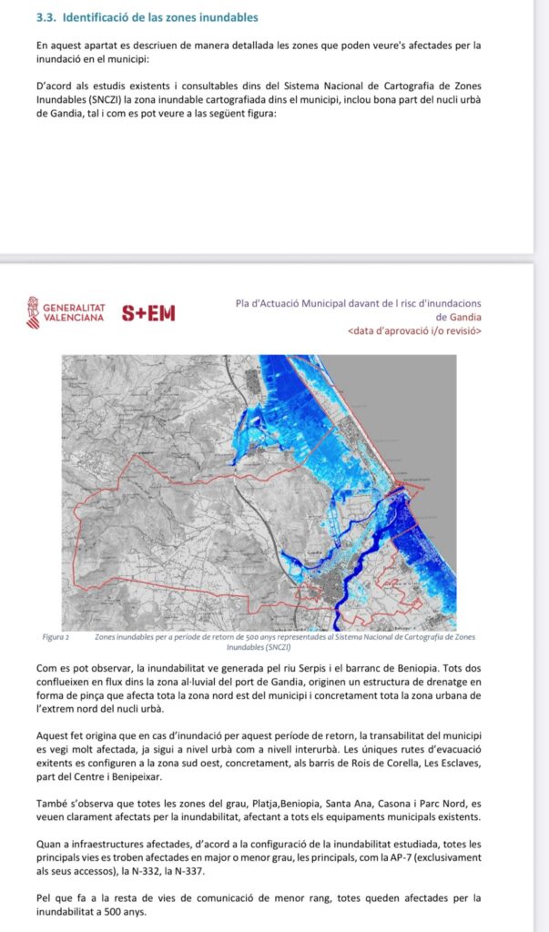 El portavoz del Grupo Municipal Popular, Víctor Soler, ha recordado que el Plan de Emergencia frente al Riesgo de Inundaciones de Gandia identifica varias zonas del término municipal como inundables, entre ellas el Grau, la Playa, Beniopa y Santa Anna, “por lo que deberían haberse adoptado medidas preventivas, incluyendo la suspensión de la actividad lectiva en los centros ubicados en dichas áreas”.