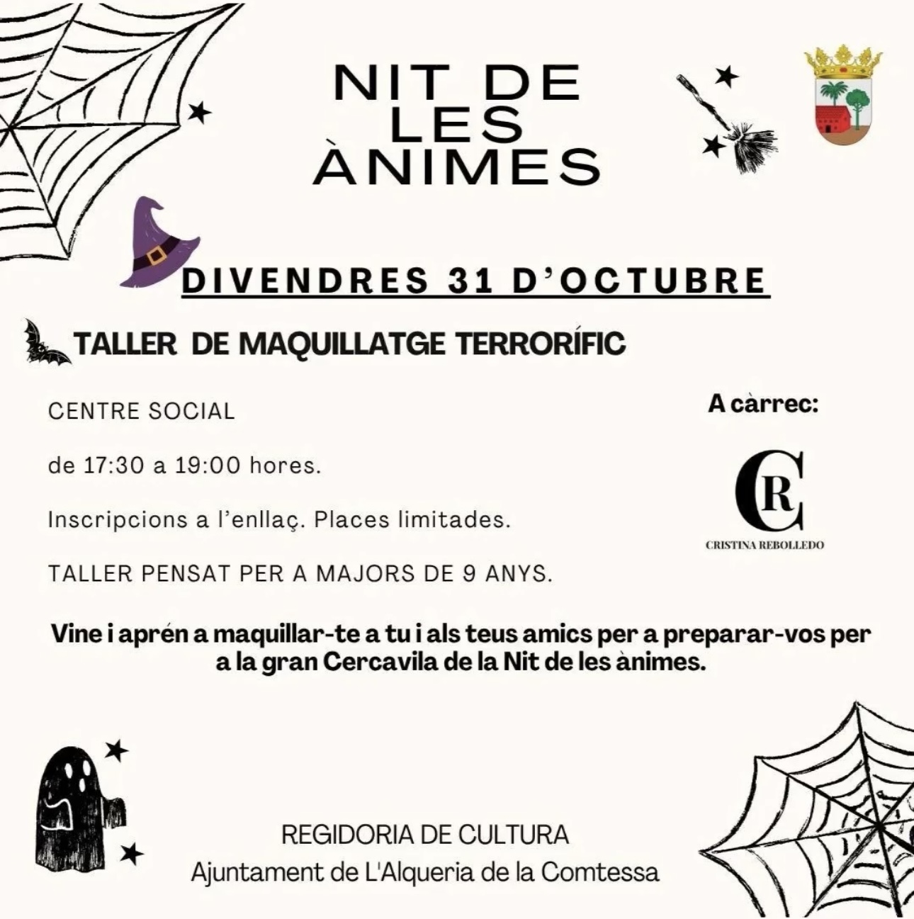 Las actividades comenzarán en el Centre Social, donde de 17:30 a 19:00 horas se impartirá un taller de maquillaje terrorífico dirigido a mayores de nueve años. La actividad, a cargo de Cristina Rebolledo, enseñará a los participantes diferentes técnicas para caracterizarse con los estilos más espeluznantes.