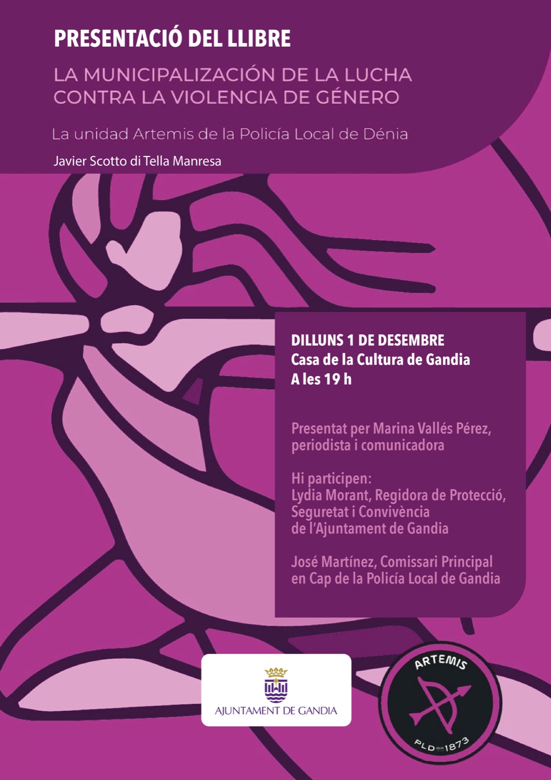 La concejala delegada de Protección, Seguridad y Convivencia, Lydia Morant, ha anunciado la presentación en Gandia del libro Municipalización de la lucha contra la violencia de género, escrito por Javier Escoto, concejal de Seguridad Ciudadana, Igualdad y Diversidad del Ayuntamiento de Dénia. El acto contará también con la participación de José Martínez Espasa, comisario principal en Gandia, quien anteriormente desempeñó funciones similares en Dénia.