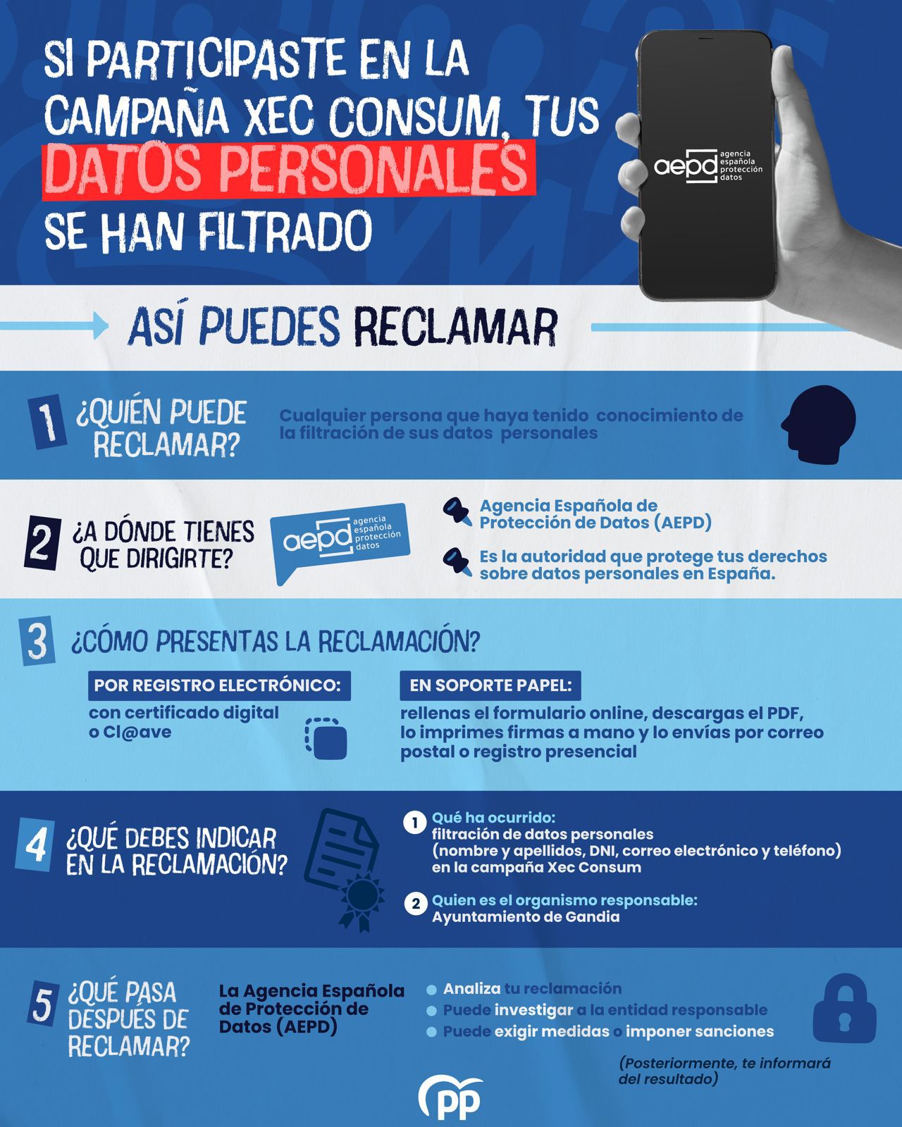 El Partido Popular de Gandia ha anunciado la puesta en marcha de un servicio gratuito de asesoramiento jurídico dirigido a los vecinos que puedan haberse visto afectados por la brecha de seguridad detectada en la campaña del Xec Consum.
