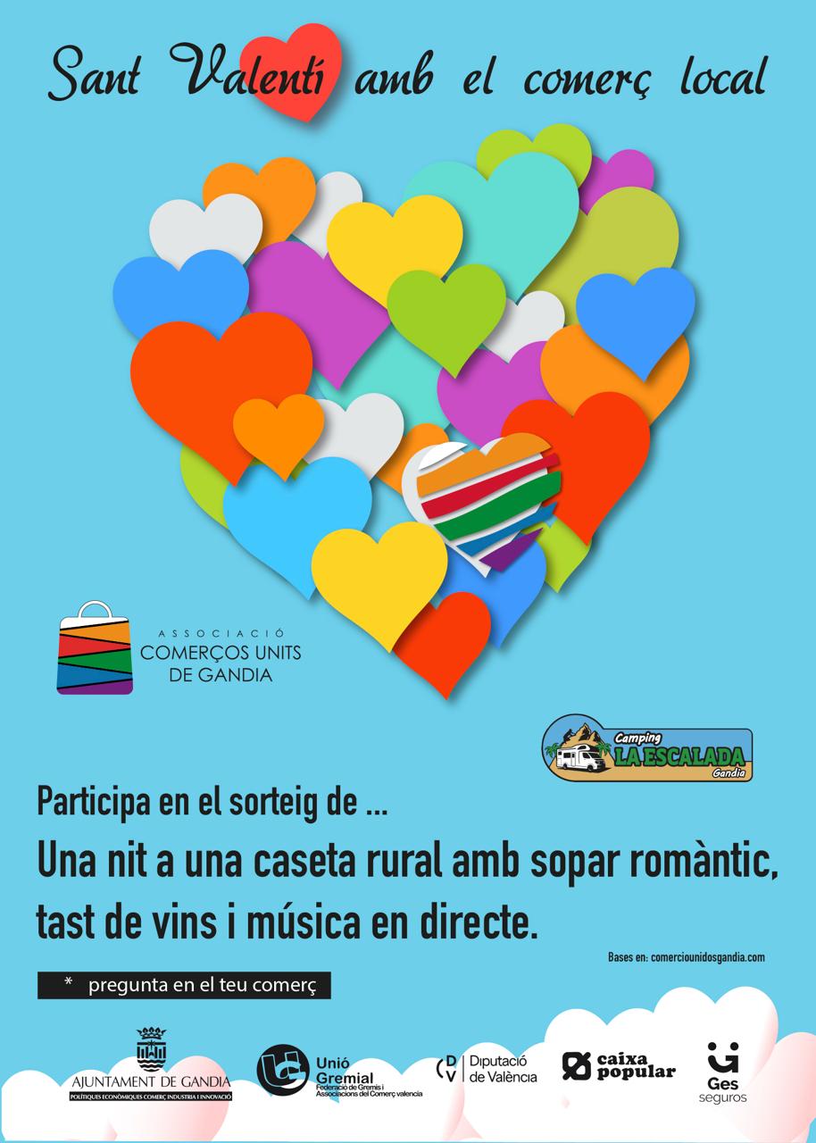 El Ayuntamiento de Gandia, a través del Departamento de Comercio, y la Asociación de Comercios Unidos de Gandia han presentado una campaña especial con motivo de San Valentín destinada a fomentar el comercio local mediante un sorteo y el lanzamiento de una nueva guía comercial.