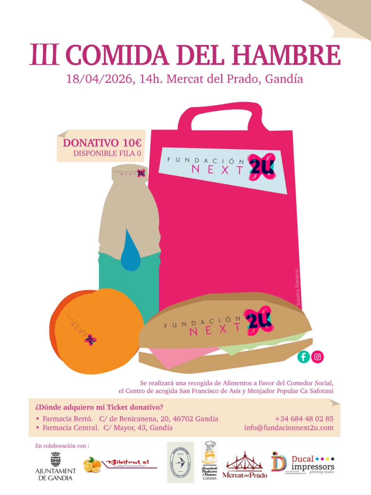 El 8 de abril la Asociación Next2U hizo una visita en el programa Comarcal Solidaria para hablar de la Tercera Comida del Hambre que se realizará este sábado 18 de abril. Tendrá lugar en el Mercat del Prado, en un espacio cubierto y preparado gracias a su colaboración, la cual comentan estar muy agradecidos porque les ha facilitado muchísimo.