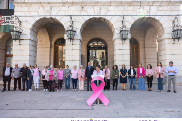 Gandia conmemora el Día Mundial del Cáncer de Mama con un acto institucional en la fachada del Ayuntamiento